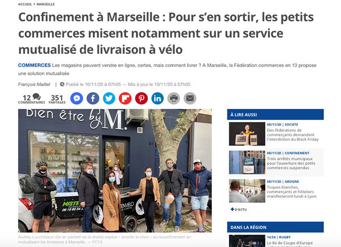La Fédération Commerce en 13 et son service mutualisé de livraison à vélo dans le journal 20 minutes